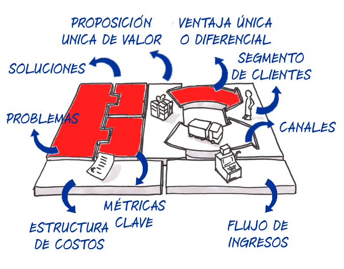 El Lean Canvas es una herramienta de visualización de modelos de negocio que aúna elementos del Business Model Canvas, por un lado, y del método Lean Startup, por el otro.